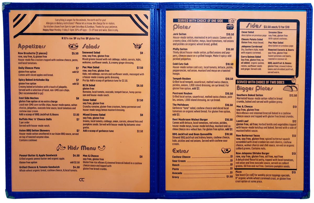 This local favorite used a somewhat generic template menu needing some sprucing up. The challenge of fitting lots of information in an atomic-themed, somewhat-limited space (in a single color!), was met by creating a livelier, more vivid container for some amazing food, pun intended.